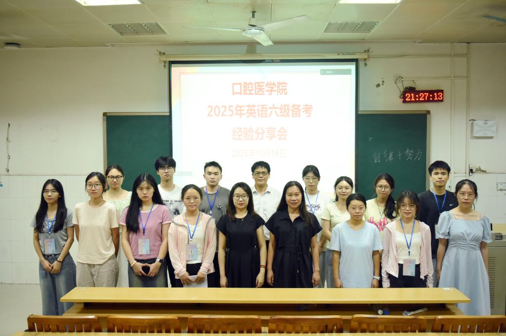 为进一步提升学生英语学习积极性与自主学习能力,帮助广大学生科学应对英语六级考试,破解备考难题,营造良好英语学习氛围,10 月 18 日晚上,口腔医学院采取“线上+线下”相结合的方式在百城校区举办以“研六级策略・破备考迷局”为主题的英语六级备考经验分享会。口腔医学院党委书记廖明华、党委副书记廖赞勇、分团委副书记潘虹出席活动,口腔医学院备考英语六级考试的学生踊跃参与此次活动。