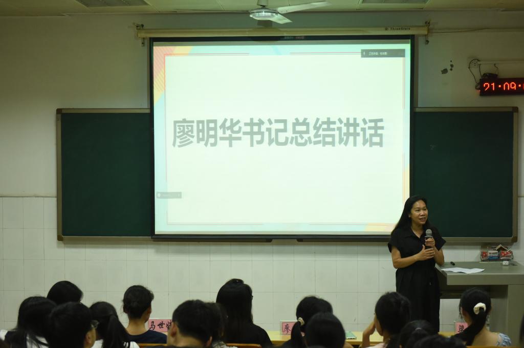 随后,廖明华书记对本次活动进行总结讲话肯定了本次分享会对学生六级备考的重要意义,并对三位同学的倾情分享表示诚挚感谢。同时,廖书记鼓励全体学生以本次分享会为契机,结合自身实际制定科学备考计划,把学到的经验和技巧运用到实际复习中,克服备考困难,树立备考信心,逐梦前行,决胜六级!以扎实的努力提升英语综合能力,力争在六级考试中取得优异成绩。