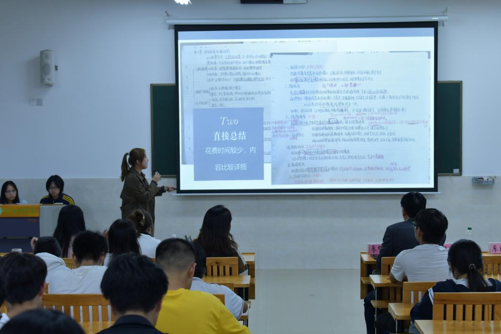 在经验分享环节,24口本班官欣瑜同学分享了英语四六级考试提分经验,对考试中的实用技巧进行讲解,定期进行模拟练习,同时借鉴高分范文的写作思路与表达方法。24口本班廖奖岚同学立足基础课程,建议同学们制定阶段性学习计划,利用思维导图梳理知识点之间的联系,同时建立错题本,定期复盘总结。23口本班葛舒瑶同学聚焦学业规划及英语四级经验分享,利用思维导图梳理知识点之间的联系。建议同学们坚持每天听15-20分钟真题听力,分享了自己平衡多门专业课学习的时间管理技巧。