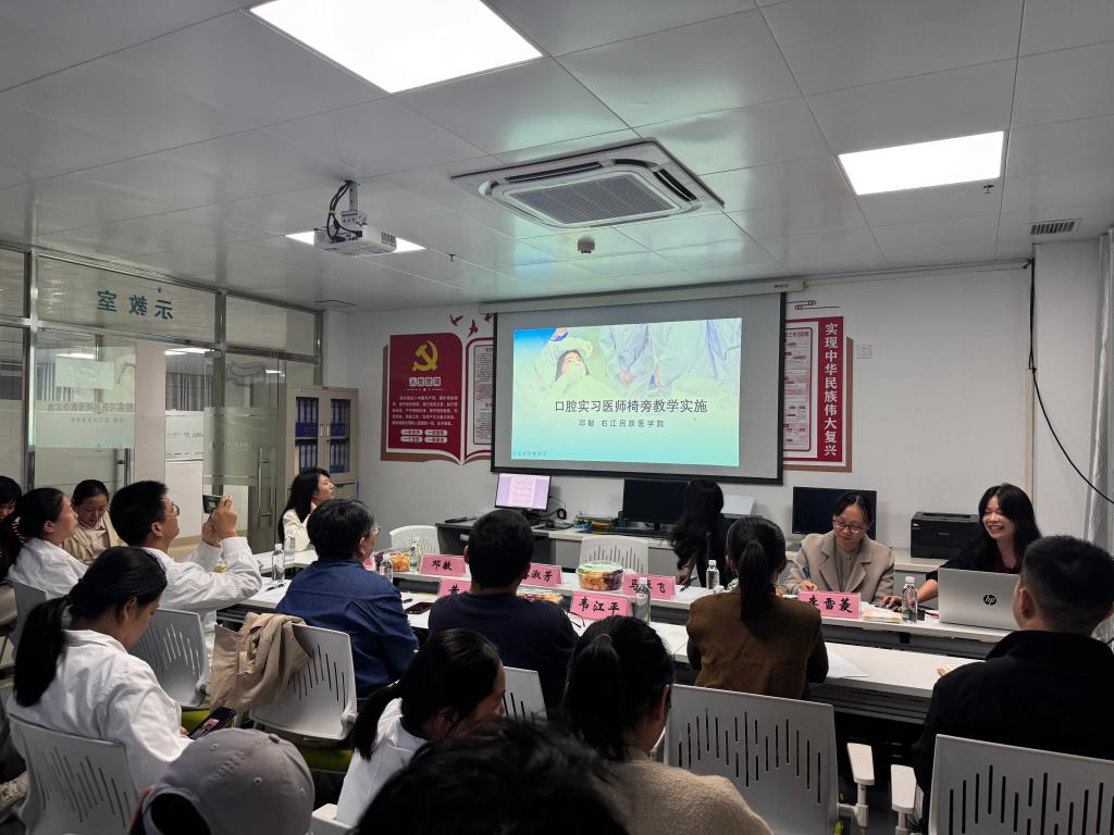 会议的核心环节为教学示范与专题交流。口腔医学院黎淑芳教授讲解“临床小讲课”实践策略以及现场示范,接着邓敏教授则围绕“椅旁教学”进行了详细案例剖析。示范环节结束后,与会教师随即展开了热烈而深入的研讨,聚焦实习生学习态度、实习生临床思维培养和临床操作技能提升,以及实习基地教学管理、临床带教老师能力提升等问题分享经验与心得,畅所欲言。