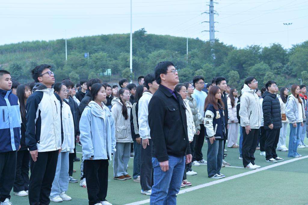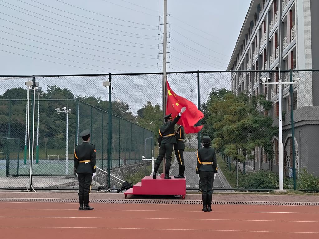随着《义勇军进行曲》奏响,护旗手迈着整齐有力的步伐护送国旗走向升旗台,鲜艳的五星红旗在晨光中缓缓升起,全体师生面向国旗行注目礼,齐唱国歌,心中满是对祖国的崇敬之情,也愈发清晰地感受到身为医学生的责任。