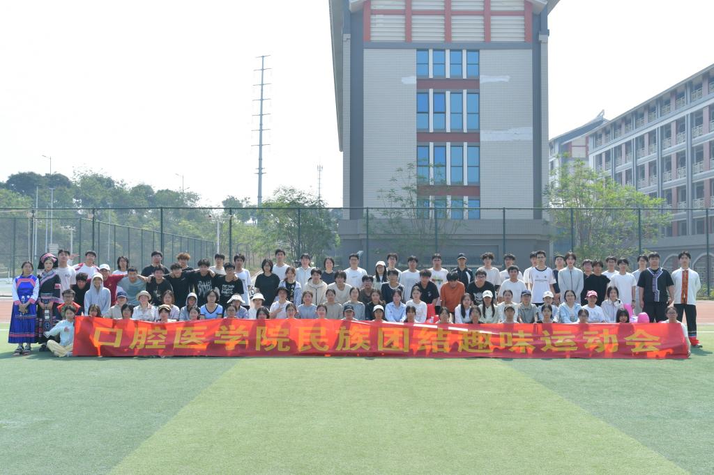 为深入学习贯彻习近平关于铸牢中华民族共同体意识重要论述,传承广西“三月三”民族传统文化,将民族团结教育与口腔专业特色深度融合,丰富师生课余生活,4月11日上午,口腔医学院以“三月三・民族情・口腔梦”为主题,在百东校区田径场成功举办民族团结趣味运动会。