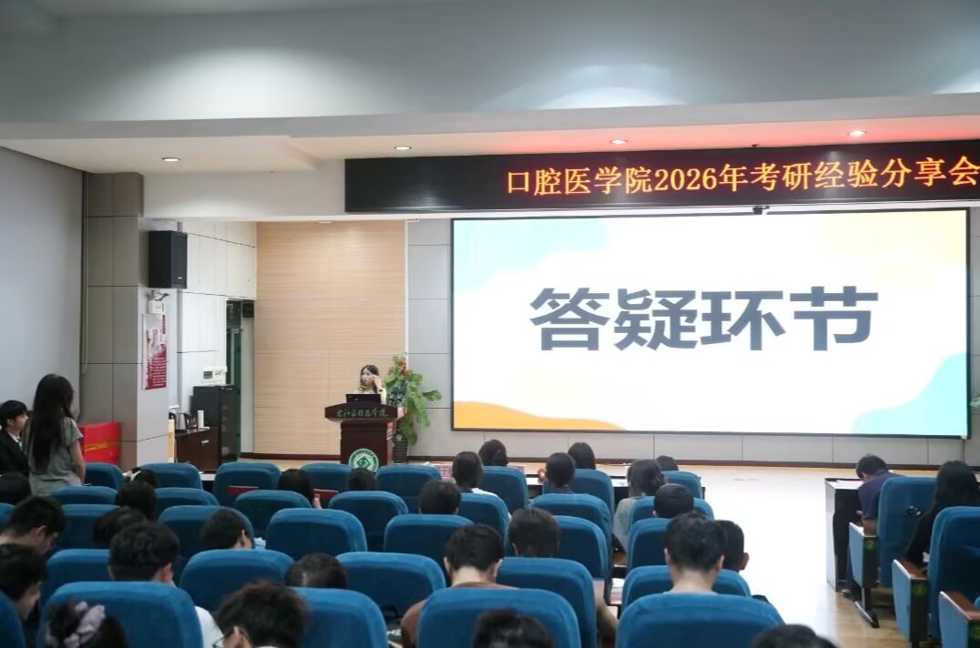 聚焦学子升学发展需求,助力口腔医学专业学生破解考研备考难题,厘清复习脉络,精准把控备考节奏。我院依托党建引领育人优势,于2026年4月21日晚在百城校区5栋101学术报告厅举办“党建引航向・研途砺初心”考研经验分享交流会。活动邀请五位考研上岸优秀学子,立足口腔专业备考特点,全方位分享复习规划、重难点突破、心态调节等实战经验。